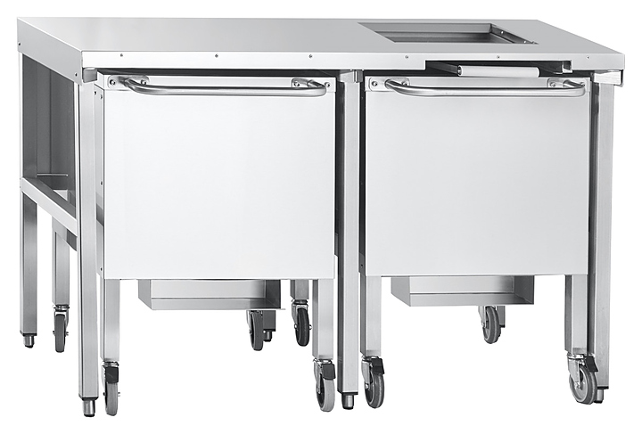 Конструкция выполнена из высококачественной нержавеющей стали. Изоляция стенок и полости стола выполнена методом заливки пенополиуретаном.