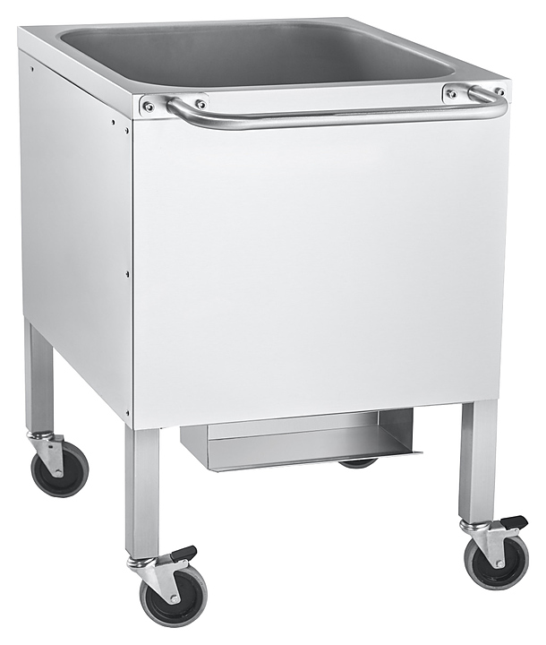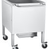 Бункер для льда Abat БН-2-100 используется совместно с льдогенераторами ЛГ-250, ЛГ-400 и ЛГ-620 на предприятиях общественного питания и торговли. Модель оснащена задвижкой, предотвращающей потерю льда при смене бункеров во время работы, краном для слива воды, полочкой для совка и регулируемыми по высоте ножками.