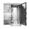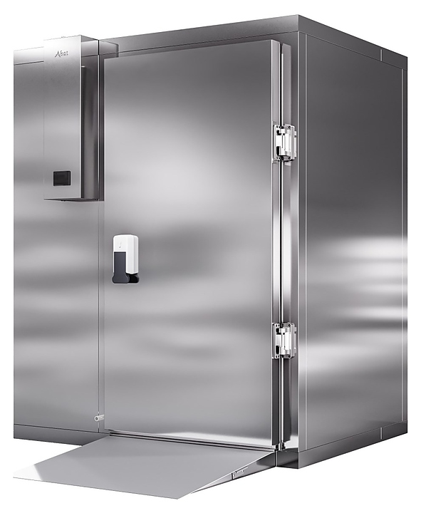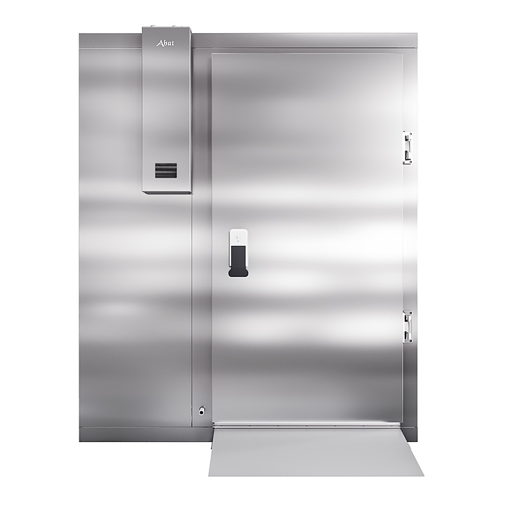 Камера шоковой заморозки Abat ШОКК-201 предназначена для быстрого охлаждения и замораживания различных пищевых продуктов и полуфабрикатов для дальнейшего их хранения на низкотемпературных складах предприятий общественного питания. Модель оснащена воздухоохладителем с 2 вентиляторами, навесной дверью с низкотемпературным уплотнителем, подогревом и двусторонним замком. Пандус и пол камеры выполнены из рифленого нержавеющего листа, стенки и потолок – сендвич-панели из высококачественной нержавеющей стали толщиной 80 мм.