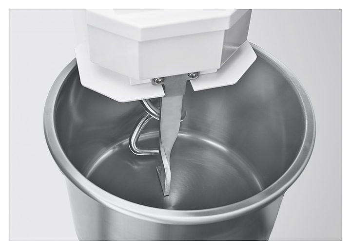 Корпус выполнен из высококачественной конструкционной стали с полимерным покрытием, металлические детали машины, контактирующие с продуктом во время замеса (спираль, дежа, нож) – из нержавеющей стали AISI 304.