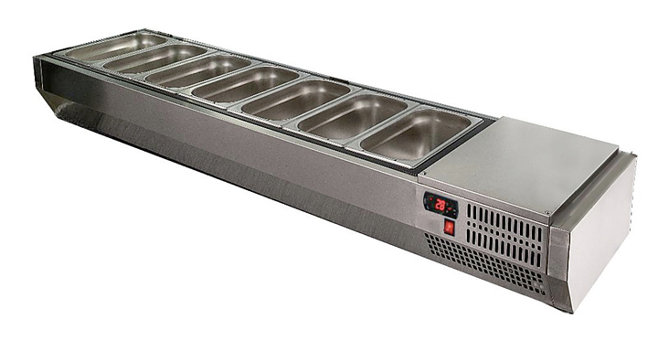 Холодильная витрина POLAIR VTi3-G предназначена для демонстрации, охлаждения и кратковременного хранения ингредиентов для пиццы и салатов на предприятиях общественного питания и торговли. Обшивка корпуса изготовлена из стали и обеспечивает механическую прочность и долговечность витрины. Оборудование рассчитано на работу при температуре окружающей среды до 32 °C и относительной влажности воздуха до 80%.